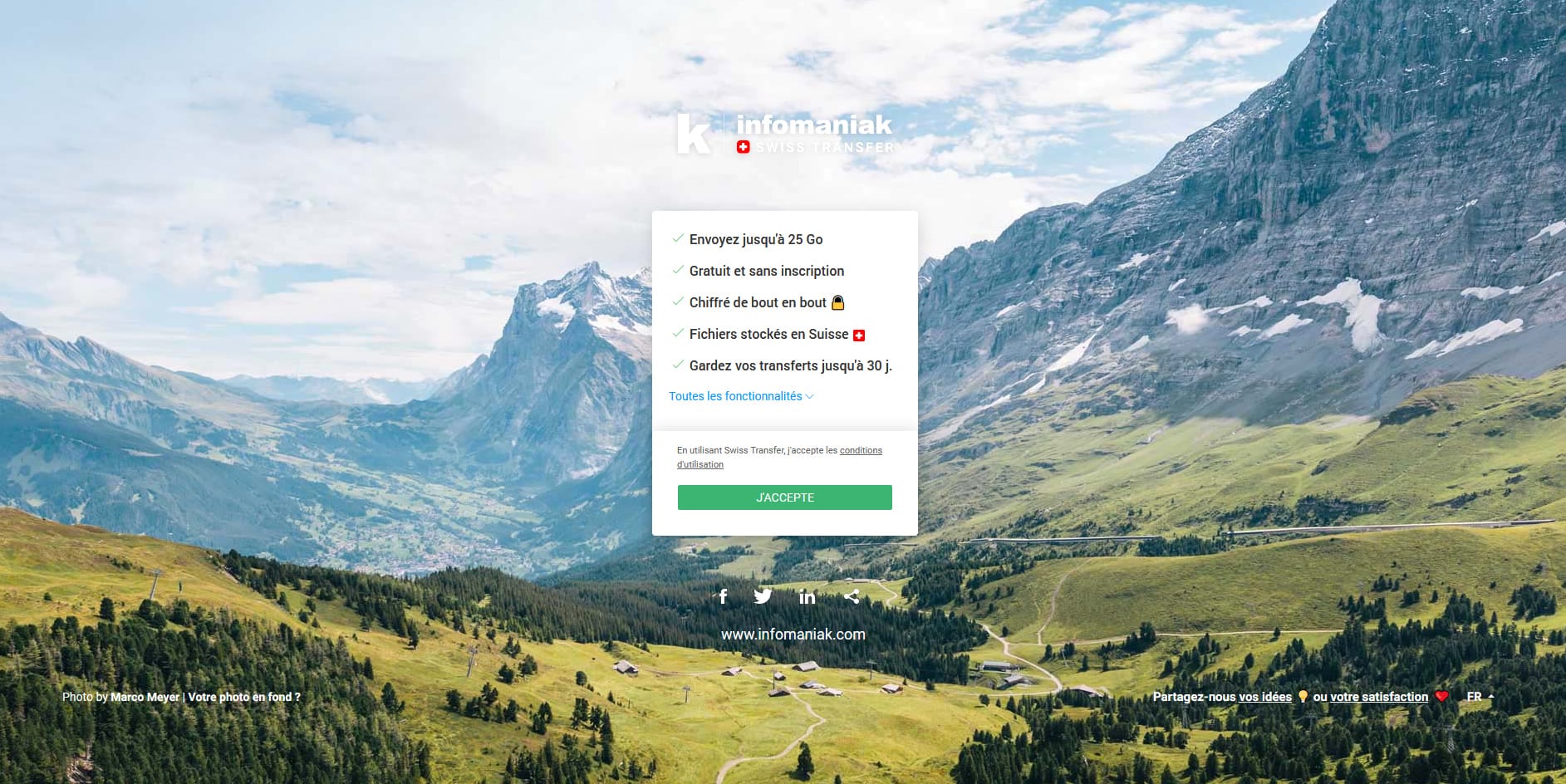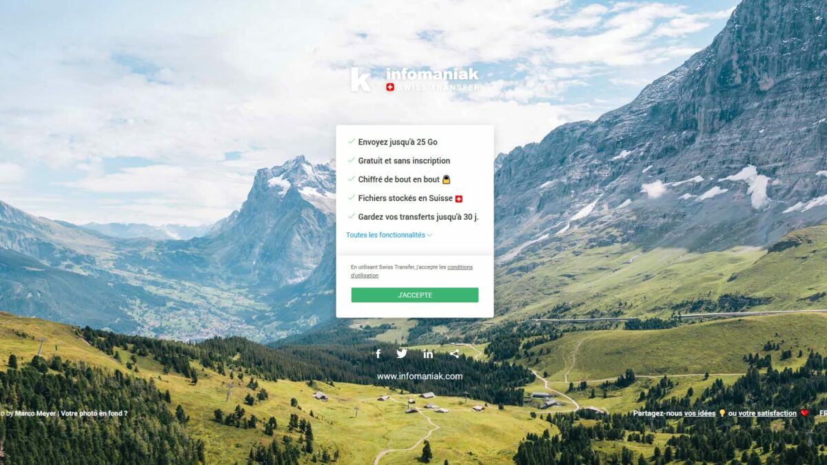 Comme son nom l’indique, Swiss Transfer est une solution suisse développée par Infomaniak, société suisse spécialisée dans l’hébergement de sites web et les solutions de stockage audio et vidéo. Basé à Genève et Winterthour, Infomaniak est le premier hébergeur web en Suisse. Équivalent du français OVH.