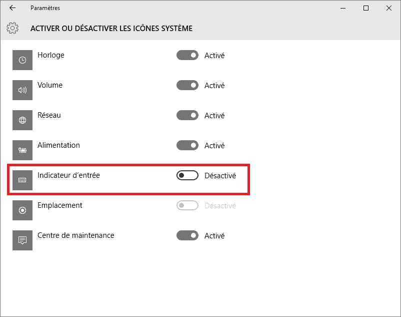 Activer ou désactiver les icônes système sous Windows 10