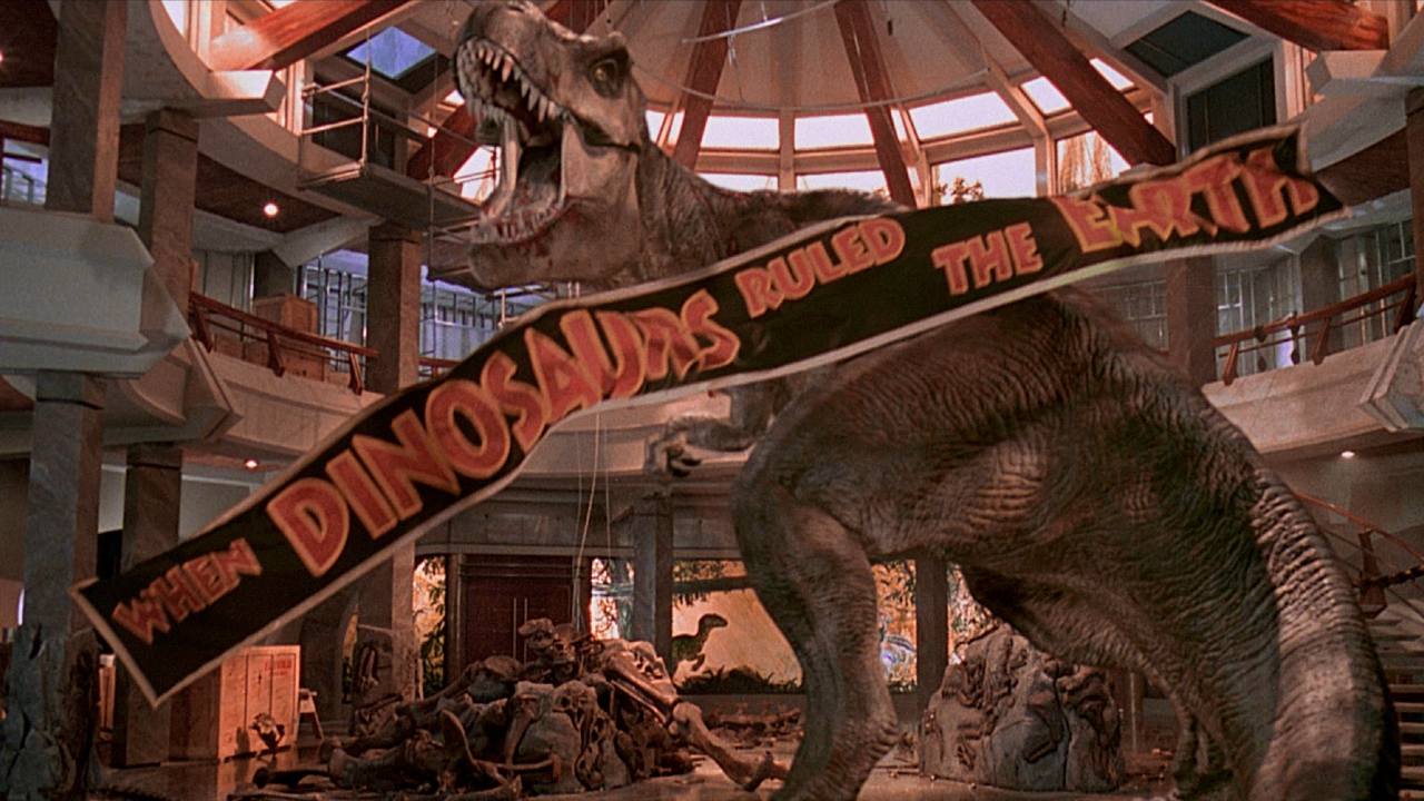 Dans la séquence finale officielle de Jurassic Park, Alan, Ellie et les deux enfants, encerclés par des vélociraptors dans le Centre des visiteurs du parc, étaient sauvés de justesse par l’arrivée d’un T-Rex qui détournait l’attention des prédateurs.