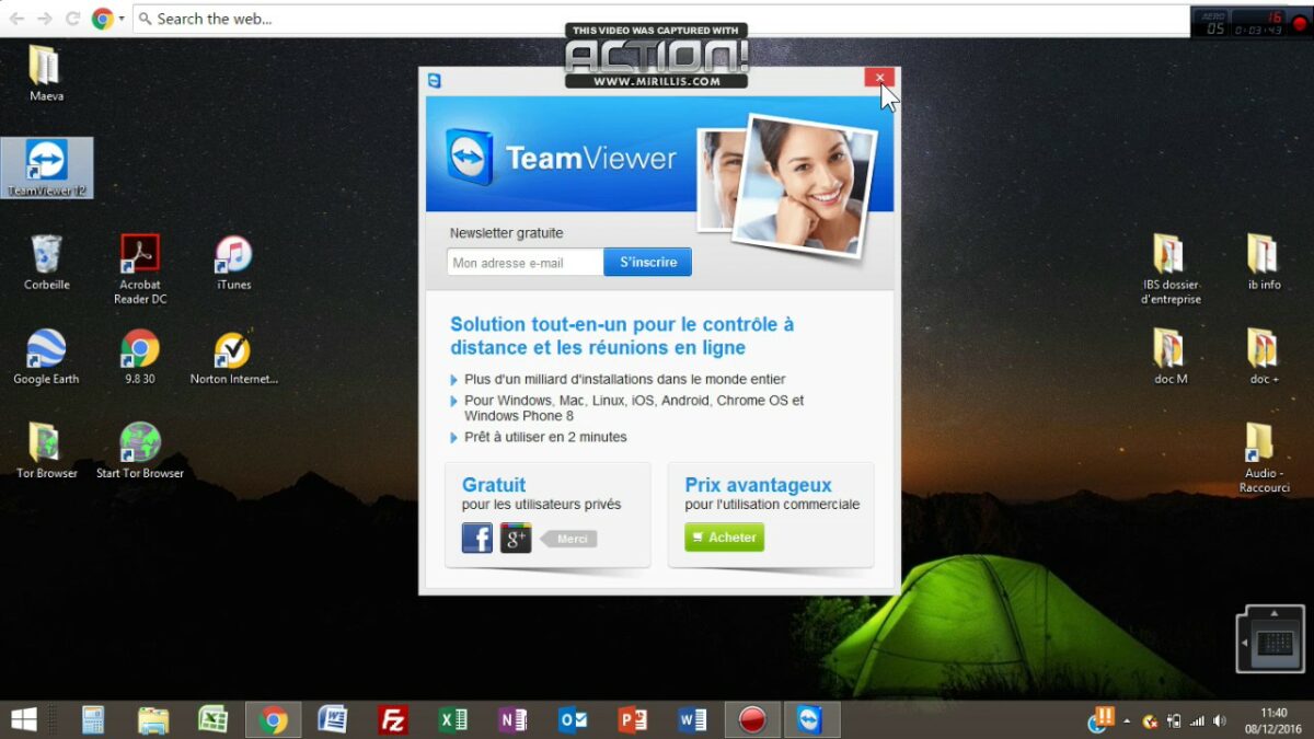 1 – cacher l’icône de Teamviewer dans la zone de notification (voir plus haut) => il faut cliquer sur une flèche pour afficher les icônes cachées puis sur l’icône Teamviewer pour afficher la console de Teamviewer. 2 – cacher la zone de notification.