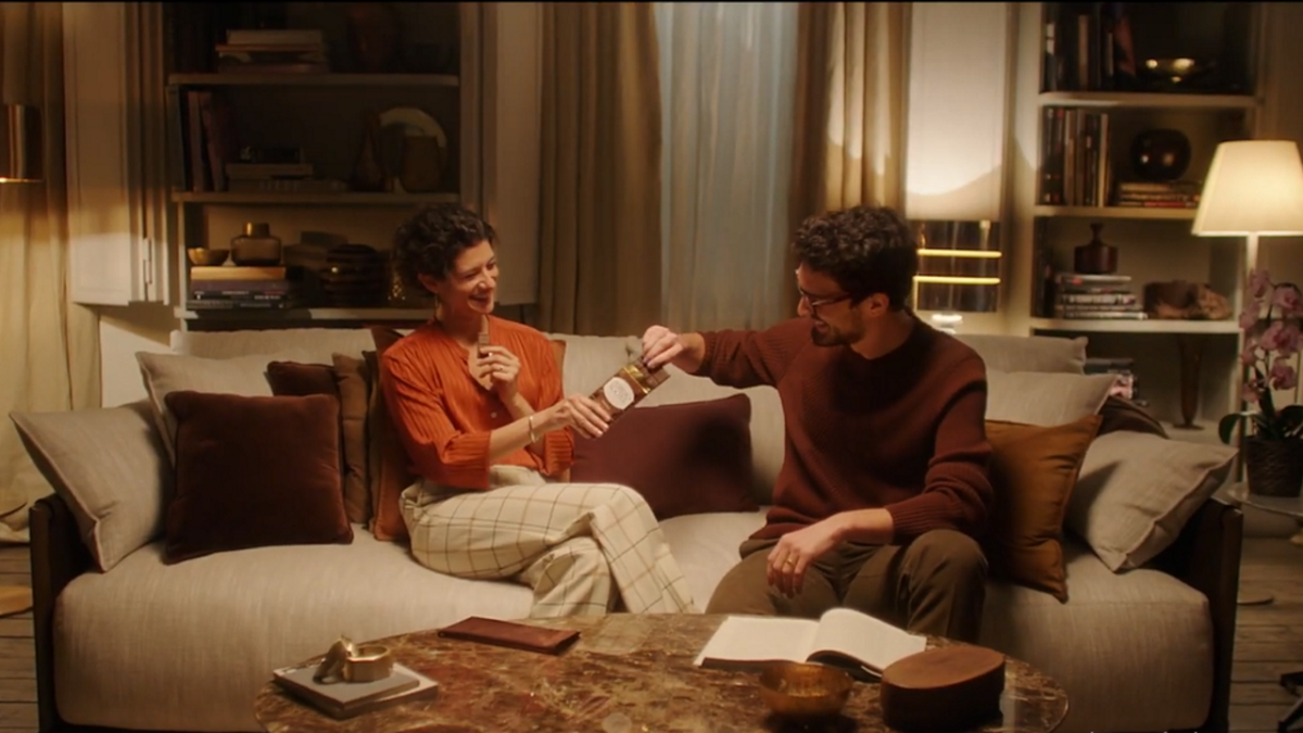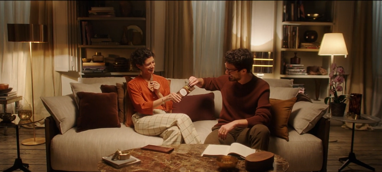 cette Publicité Ferrero Golden Snow Parce que la nouvelle tablette de chocolat commence par le fameux chocolat dans le précieux emballage que nous connaissons tous. La publicité continue ensuite en montrant une belle vue de la nouvelle barre de chocolat au lait avec des éclats de noisettes visibles. Une femme le mordit, savourant la joie pure du moment sous les yeux de son compagnon. Alors elle lui en a offert un morceau, un vrai moment de gourmandise à partager.