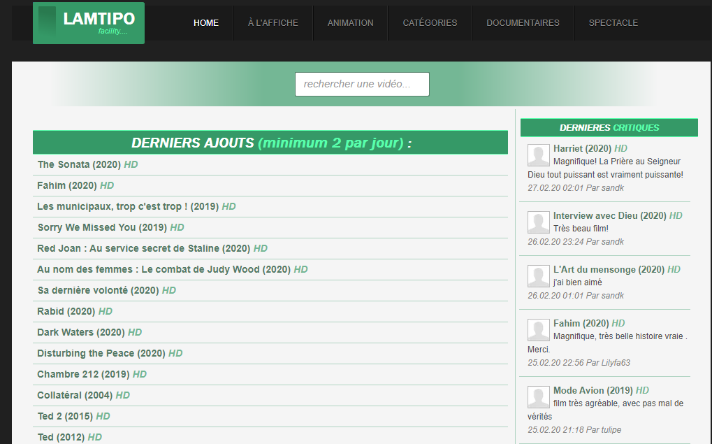 Site de streaming Lamtipo au moins 3 films par jour en 2022