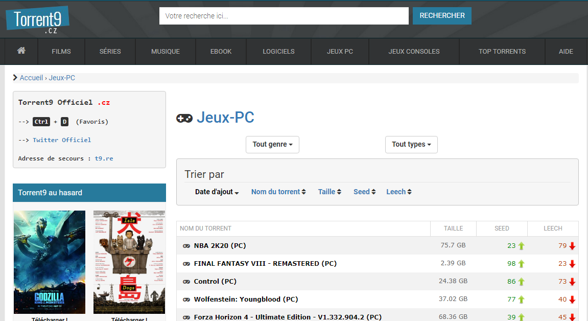 Torrent9 nouvelle adresse mai, juin, juillet, août, septembre, décembre, janvier 2022